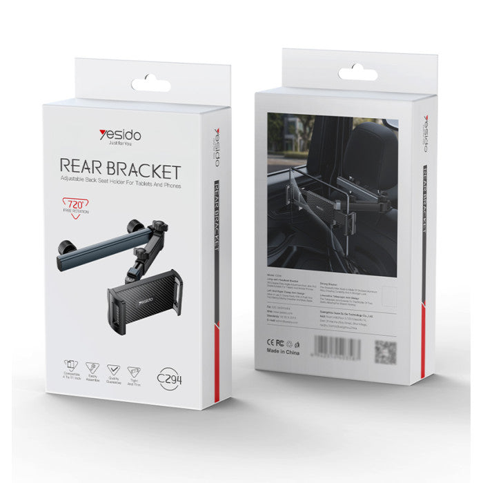 C295 Yesido 360 Rotating Extra Wide Clamping Arm Long Hip Headrest Car Phone Holder.