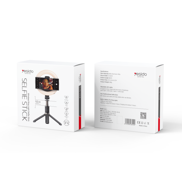 Yesido SF12 LED Ring Light Stand Selfie Stick
