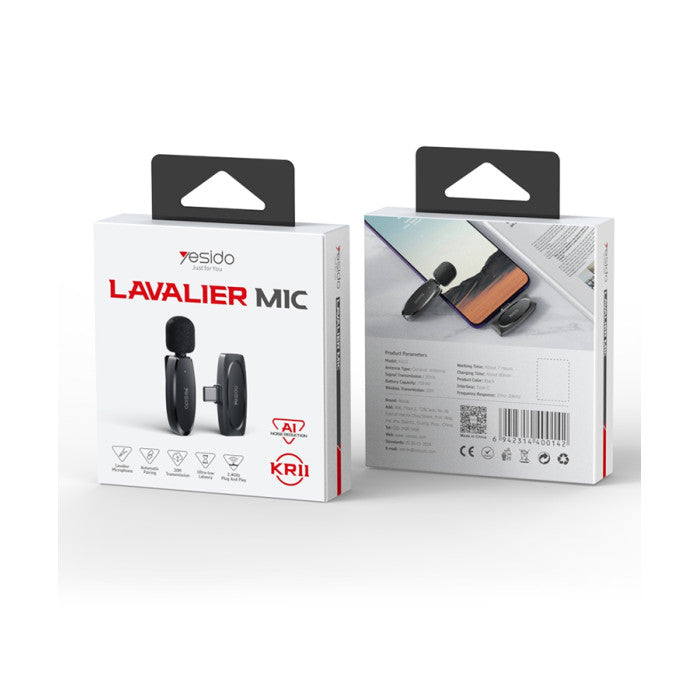 Yesido KR11 portable noise reduction wireless transmission 360 pickup voice Type-C transmit port wireless MEMS Microphone..